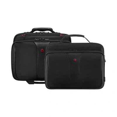SIMPLE WHEELED BRIEFCASE FOR MEN AND WOMEN: This modern laptop bag on wheels has a straightforward yet stylish design. Its elegant look makes it the ideal accessory to take along to the office and on business trips. This bag comes with a practical organiser section to neatly store important accessories like power cords and chargers. PADDED LAPTOP POCKET: Various compartments with lockable zippers in the bag offer sufficient space for all your tools and supplies. A dedicated padded pocket easily fits a laptop of up to 17-inch size. A removable laptop case works as an alternative storage option for laptops of up to 15.6-inch size. An additional compartment provides ample space to neatly keep important documents without crumpling them. COMPREHENSIVE FEATURES: The telescopic handle and easy-glide wheels allow the briefcase to be easily turned into a trolley. A built-in overnight compartment offers additional space for your clothes and is therefore the perfect accessory for business trips. BOX CONTENTS AND DIMENSIONS: Wenger laptop bag on wheels with removable laptop case, Dimensions: 31 x 43 x 41 cm, Capacity: 25 l, Weight: 4.1 kg, Model: Patriot, Colour: Black, Item number: 600662 TOP QUALITY: Wenger is a manufacturer of watches, travel gear and business gear. It offers a wide range of vintage and sports watches, travel suitcases, backpacks, laptop bags and briefcases. The Swiss company has a long-standing history of over 125 years and is characterized by its traditional values, quality, precision and craftsmanship.