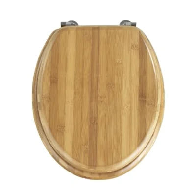 Wenko 144726100 Toilet seat Bamboo chromemetal mounting, Bamboo, 37 x 42.5 cm, Brown Dark