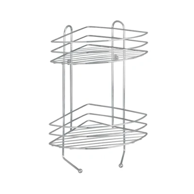 Wenko 15498100 Exclusive Corner Rack 2 Shelves, Hooks, Metal Steel, 23.5 x 43 30.5 cm, Chrome