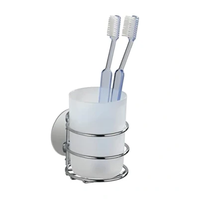 WENKO 18779100 Turbo Loc® toothbrush tumbler fixing without drilling, Steel, 7.5 x 10 9 cm, Chrome