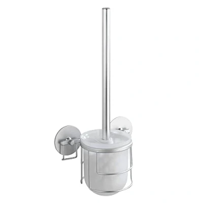 Wenko 18905100 TurboLoc wallmounted WC Set Matt Aluminium Extra Lightweight, Fixing Without Drilling, Metal Aluminium, 15 x 37 11.5 cm,