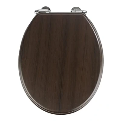 Easy Close soft closing mechanism for silent and gentle lid closure Rustproof Fix-Clip hygienic metal mounting element for easy mounting and detachment for cleaning Made of compression-moulded, medium-density fibres (MDF) in brown Easy-to-clean, moisture-resistant, non-porous surface due to multi-layer coating Including wall bumper