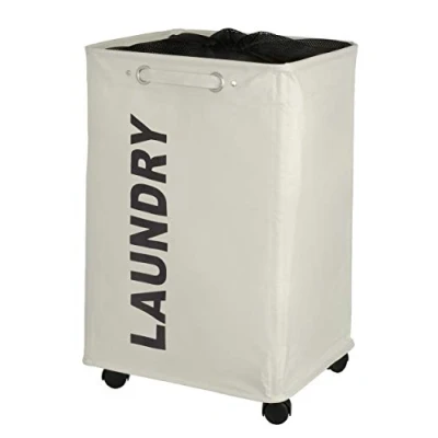 WENKO 3450110100 Laundry bin Quadro Beige basket, capacity 79 L, Plastic Polyester, 40 x 60 33 cm,