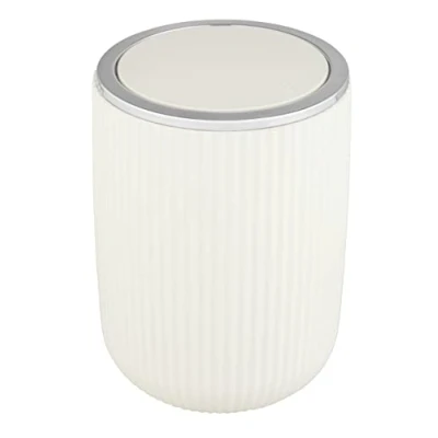 Fancy design: Only the best for your feel-good oasis – the elegant swing bin with sculptural design and textured surface in cream white sets attractive accents in your bathroom & guest WC Practical function: The perfect cosmetic bin for bathroom & guest WC is just right for the little things that need to be disposed of every day. Easy to use thanks to the practical, discreet swing mechanism High quality: Since durability & sustainability are close to our hearts, we use exquisite, high-quality materials. To ensure that you can enjoy the bathroom accessory for a long time, the bathroom bin is made of sturdy plastic, BPA-free. Cleverly combinable: Complement your bathroom furnishings with the matching soap dispenser and toothbrush mug as well as the toilet brush set. They are the perfect companion to furnish your resting place in an organised and original way with bathroom accessories. Optimal dimensions: With its dimensions of (W/D x H): Ø 14.5 x 20 cm and 2 litre capacity, the waste bin is the perfect size for every bathroom, guest WC and the entire household