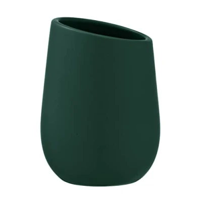 Wenko Badi toothbrush mug, cup made of high quality ceramic with matt surface, for storing and toothpaste, perfect bathroom & guest WC, dark green, 25200100, 8 x 11 cm
