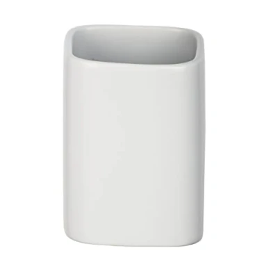 WENKO Hexa Ceramic Toothbrush Beaker Matte White, 9 x 6.5 cm