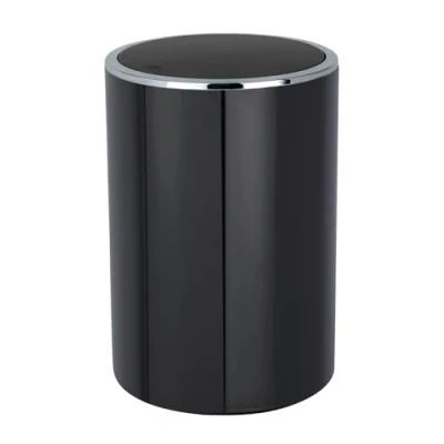 Convenient waste bin with swing cover for bathroom or household With a capacity of 5 liters Classic black colour for a tasteful note Dimensions: 18,5 x 25,5 cm