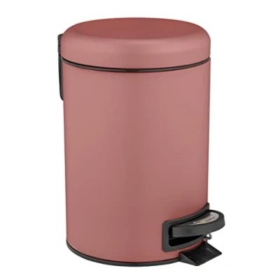 WENKO Leman pedal bin, 3 liters, with removable insert, made of painted steel, 17 x 25 22.5 cm, antique pink