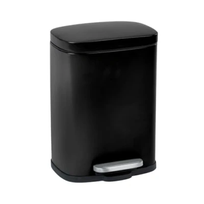 The Leno pedal bin: The compact cosmetic bin Leno Easy Close by WENKO impresses across the whole line, especially with its puristic shape and its diverse properties. The attractive bin with lid has a capacity of 5 litres and is ideal as a waste bin in different rooms of the entire household. Practical additional functions: Loud lid banging is a thing of the past thanks to the gentle easy-close automatic lowering mechanism – the lid can be opened hygienically and without a handle and then closes slowly and quietly by itself. A removable plastic insert in the waste bin makes cleaning and emptying more enjoyable. Thanks to the integrated bag holder, the bag is also invisible from the outside. High-quality finish: The elegant pedal bin is made of durable steel and has been refined with a timeless lacquer in the mysterious looking colour black. The surface of the bucket is easy to clean with a wipe. The practical pedal is made of rust-proof, satin stainless steel and the removable inner bucket is made of durable plastic. Black is attractive: The colour black is said to be elegant and timeless. The powerful colour is often used in industrial furnishing style and gives the living space a trendy loft character. The multi-talented accent stands out due to its contrast and thus offers numerous combination possibilities with other colour nuances. Box contents: 1 x Leno Easy Close bin with pedal function from WENKO 5 litres, with integrated bag holder, dimensions (W x H x D): 21.5 x 19 x 29.5 cm, Black.