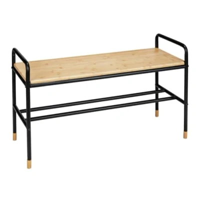 WENKO Loft Shoe Rack in Factory Flair with Shelf for up to 4 Pairs of Shoes, Made Steel Tubular Solid Seat FSC® Certified Bamboo, 85 x 50 33.5 cm, Black/Natural