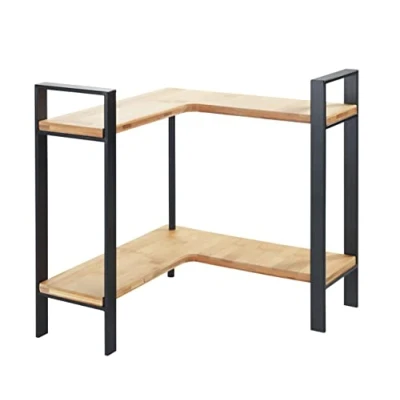 WENKO Lou Corner Shelf, Exquisite Two Tier Storage for Worktop, Metal With Bamboo Boards, Kitchen Organization, (W x H D): 30 33 cm, Black/Light Brown