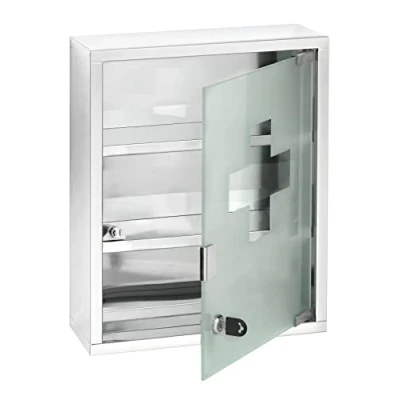 Decorative medicine cabinet for the safe storage of medication and bathroom utensils Made of high-grade, shiny stainless steel and satin-finish safety glass with decorative pattern Plenty of storage space on 3 levels and lockable door as protection against unauthorized access Including screws and dowels for wall mounting Dimensions (W x H x D): 30 x 12 x 40 cm, Weight: 1.0 pounds, Manufacturer: WENKO