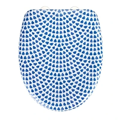 WENKO Sevilla toilet lid, premium Duroplast design, Easy Close soft closing mechanism, Fix Clip hygienic stainless steel fastening, anti bacterial & scratch resistant, 38 x 45 cm, blue/white