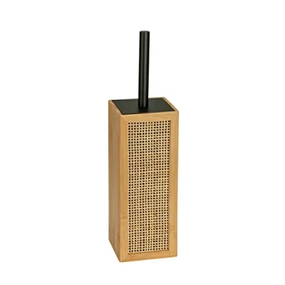 Trendy bathroom tool: The Allegre toilet set by WENKO sets boho accents in the bathroom and guest bathroom. With its handy dimensions, the practical toilet brush set fits comfortably in corners and smaller bathrooms. It is made of high-quality bamboo and visual highlights of rattan. The look is rounded off by the WC brush handle made of matt lacquered steel in black. Trendy boho style: With decoration and accessories in the boho look, you are fully in line with the current trend. The unconventional style allows anything you like. However, rattan, bamboo and other natural materials and near-natural colours are typical and can be optimally complemented with green climbing plants, for example. The Allegre series sets lovely boho accents. Hygienic cleaning: The toilet brush set is equipped with a toilet brush with a black plastic toilet brush head (Ø 6.5 cm), which is replaceable and ensures thorough cleaning of the toilet. A cover is attached to the brush handle to prevent people from looking inside. Combine in style: Matching the set, the Allegre series by WENKO also includes a toilet paper holder as well as other bamboo rattan accessories such as trays and boxes in different sizes and designs that give your bathroom a boho flair. The boho style can be combined with different colours – for example, green, light blue or black. Scope of delivery: 1 x Allegre toilet brush set, toilet brush holder made of bamboo and rattan incl. toilet brush with replaceable WC brush head and handle made of steel, (W x H x D): 9.5 x 36.5 x 9.5 cm.