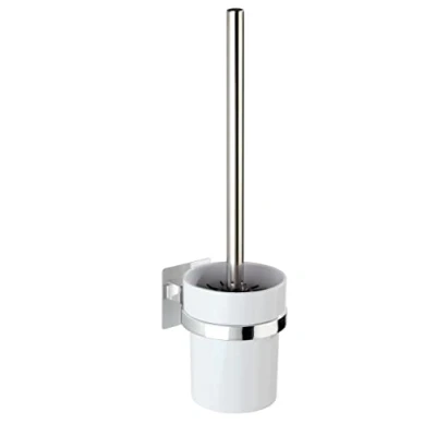 Turbo-Loc wall mounting system - special adhesive pad for easy installation without drilling Extremely firm hold on all smooth surfaces, can be removed without leaving any residue Holder for the toilet brush made of plastic and stainless steel Toilet brush with silicone brush head, removable container Measures 9.5cm wide x 35.5cm high x 12cm deep
