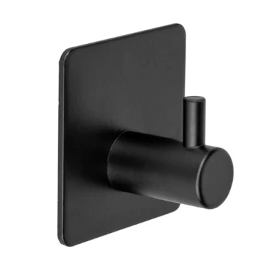 WENKO Ureo wall hooks, black, set of 2, high quality hooks made lacquered, stainless steel, towel for bathrooms, guest WCs & the entire household, mounting without drilling, 4.5 x 3 cm