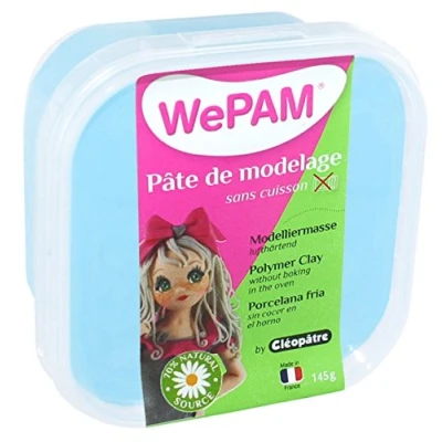 Pleasant and easy to work with, the WePAM is a ready-to-use modelling clay that dries in the air Allows you to make all types of modelling (home decoration, jewellery, figurines, scrapbooking, etc.). When dry, WePAM hardens and looks porcelain Can be dyed or painted with acrylic paint or dyes. Can also be varnished. Almond smell Made in France using the famous Cléocol glue and natural ingredients This product meets the European standard EN71-1, can be used from the age of 3 years.