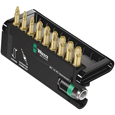 Wera 05056376001 Bit Check Set 8655 9/TH Torsion Extra Hard with Rapidaptor for Drill/Drivers, Timber Jointing, Pozidriv 10pc