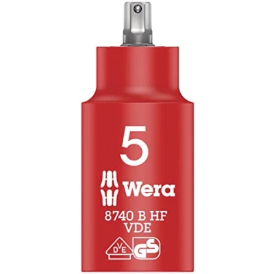 Increased safety due to 2-component isolation with yellow insulation core under red insulation outer layer Extremely short and compact VDE ⅜“ bit socket for easy work even in very confined spaces Extremely short and compact VDE ⅜“ Bit socket for easy working conne spaces Extremely short and compact VDE bit nut 3/8 inch for easy work even in very narrow spaces Bit sockets with Holding Function, securely hold the fastener on the bit socket Extremely short and compact 3⁄8-inch bit socket for easy work even in very confined spaces, Weight: 0.11 pounds, Manufacturer: WERA