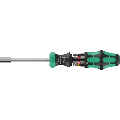 The ratchet with fine toothing integrated in the handle allows fast working The innovative ratchet mechanism also allows fast "spinning". A real problem solver when there is no resistance from the screw Intuitive switching: If I turn the switch clockwise - the ratchet turns clockwise, if I turn the switch counterclockwise - it goes counterclockwise Integrated bit magazine with 6x 25 mm bits BiTorsion Bits, Weight: 289.0 grams, Manufacturer: WERA