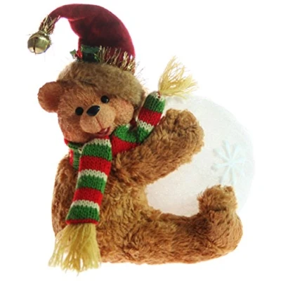 This cute decoration features a bear with a giant snowball inside which are colour changing led's which gently glow. The bear is wearing a festive hat adorned with Tinsel, holly and a tiny bell. Hes also got a multicoloured scarf and a beautiful smile. Battery Operated with 3 x L1154 button cells which come supplied Size: Height 17cm, Width 15cm, Depth 15cm Exclusive to WeRChristmas