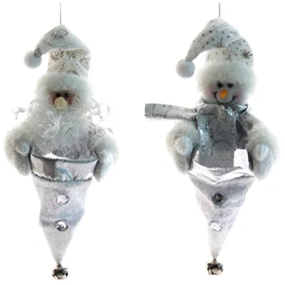 WeRChristmas 23 cm Hanging Santa and Snowman Christmas Tree Treat Sweet Chocolate Bags, Twin Pack, Silver/White