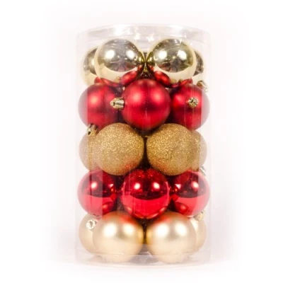This 25 piece circular bauble pack come in a variety of eye-catching finishes including shiny, matt and glitter. Finished in a complementary mix of Red and Gold which will really bring your tree to life. Our extensive range of bauble packs come in a variety of sizes and colours to suit all tastes. Comes complete with Hanging String. Please note we also sell plastic bauble hooks if you prefer to use these. Contents - 25 x 60mm