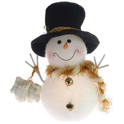 This beautiful snowman decoration comes complete with stick arms and a cotton scarf inset with golden tinsel. With bells for buttons he's also carrying a set of mittens and is illuminated with colour changing led's. As this is battery operated it can be placed anywhere around your home with no unsightly wires. Size: Height 28cm, Width 20cm, Depth 15cm Battery operated (requires 3 x AA Batteries)