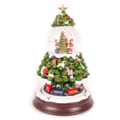 WeRChristmas 27 cm Santa Christmas Tree Musical Animated Snow Globe Decoration with Revolving Train