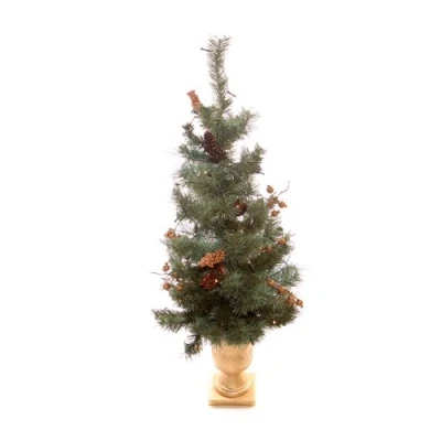 This beautiful potted tree is ideal for brightening your home especially where space is at a premium. It is decorated in a rustic copper theme and has a variety of baubles, berries and leaves. Looks fantastic as a secondary tree in a hallway or conservatory. Requires 3 x AA batteries (not included). Size 106cm (3.5 feet)