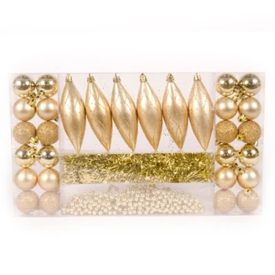 WeRChristmas 32 Piece Deluxe Variety Christmas Tree Baubles Decoration Pack with Tinsel and Beads, Gold