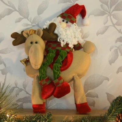 This great fun decoration features Santa riding a reindeer. The reindeer has a cute red saddle and a bell round his neck. Santa has his traditional hat on and a great big wispy beard. Both Santa and the reindeer are trimmed with a red and green tartan too. The reindeers feet are weighted for stability. Great little addition to any christmas themed room Exclusive to WeRChristmas