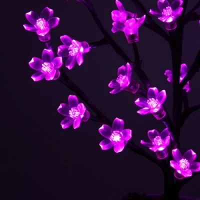 This 40cm (16inches ) potted Cherry Blossom tree is a great way to brighten up your home no matter what time of year it is. It's illuminated by 40 Pink leds and even has some realistic looking moss to add to the authenticity. It has two setting either steady on or a flashing effect and a 0.5m green lead wire to the battery pack. Requires 3 x AA Battery (Not Supplied) Exclusive to WeRChristmas
