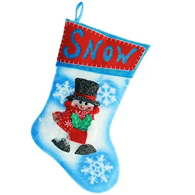 This beautiful stocking features a snowman carrying a present. He's wearing a smart top hat with red trim, earmuffs and a red scarf . Around the top of the scarf is a red band with the word Snow emblazoned on it. The stocking is illuminated by 7 colour changing led's shaped like a snowflake that give this a real eye-catching effect. Can be used simply as an ornament or a stocking for those special little treats. Battery Operated - Requires 3 x AA Batteries (Not supplied)