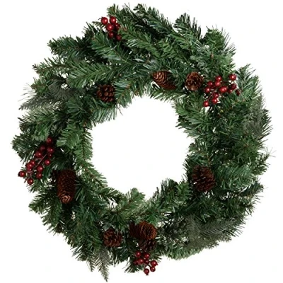 WeRChristmas 60 cm Natural Cones and Berries Decorated Pre Lit Wreath Christmas Decoration Illuminated with Warm LED Lights, White