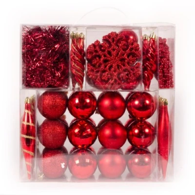 WeRChristmas 60 Piece Deluxe Variety Christmas Tree Baubles Decoration Pack with Tinsel and Beads, Red