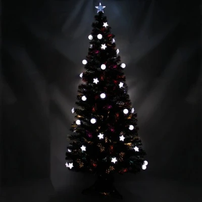 WeRChristmas 7 ft Black Pre Lit Multi Colour Fibre Optic Christmas Tree with 44 LED White Stars Baubles and Topper