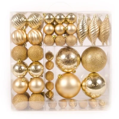 WeRChristmas 75 Piece Deluxe Variety Christmas Tree Baubles Decoration Pack, Gold
