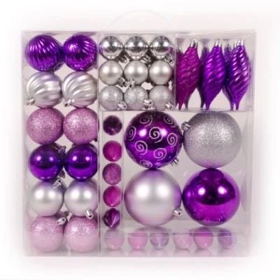 Our 75 piece Purple, Silver and Fuchsia bauble pack has a wide variety of shapes and sizes to really bring your tree to life. They come with a range of finishes including shiny, matt, glitter and swirl effect. Our extensive range of bauble packs come in a variety of sizes and colours to suit all tastes. Comes complete with Hanging String. Please note we also sell plastic bauble hooks if you prefer to use these. Sizes include 40mm, 60mm and 100mm round plus icicle drops in both swirl and smooth style finishes.