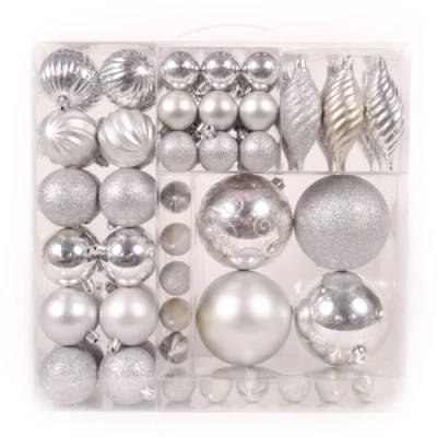 WeRChristmas 75 Pieces Deluxe Variety Christmas Tree Baubles Decoration Pack Silver