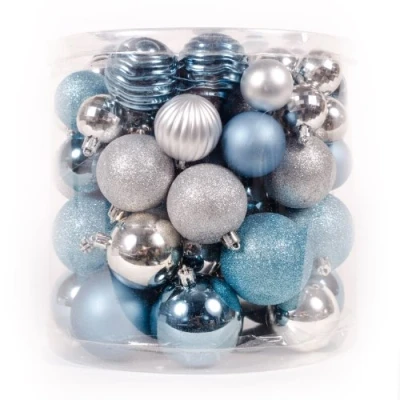 WeRChristmas 80 Piece Deluxe Variety Christmas Tree Baubles Decoration Pack, Blue/Silver