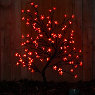 WeRChristmas striking cherry blossom tree really is a fantastic item, it stands at 80 cm tall and has a lovely black trunk and branches It's illuminated by 96 red LED's and is for outdoor use, It comes with a square metal base for effective stability The tree is powered by a low voltage transformer a comes with a long 5 m lead This tree can be used all year round so it's ideal for barbecues too Size: Height 80 cm (32 inch )