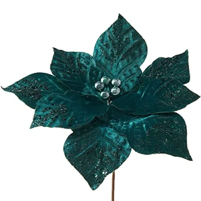 WeRChristmas Artificial Poinsettia Christmas Tree Flower Decoration, Emerald, 30 cm