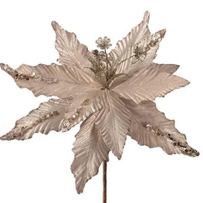Intricate design creates realistic Poinsettia flower Striking gold colour Flexible wired edges allow leaves and stem to be manipulated Poinsettia size: 32 centimetres (diameter) Stem size: 40 centimetres (length)