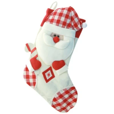 Features a white and red Santa with a festive pattern 3D Santa with a red and white hat Large felt stocking ideal for multiple presents or treats Soft fabric material Size: Height 48 cm (19 inches)
