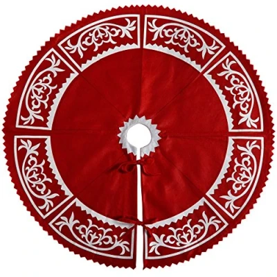 This is a grand way to decorate the base of your tree The ideal finishing touch to your tree This tree skirt has an intricate red and white pattern and a serrated edging It's a way to hide any pots or stands that you have used to erect your tree Size: Diameter 122 cm (48.5 inch)