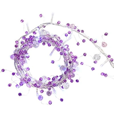 WeRChristmas Clear and Frosted Beaded Christmas Garland Decoration with 40 LED Lights, 2.4 m Blue