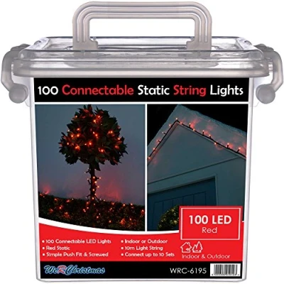 WeRChristmas Connectable Static LED String Lights with 2 Pin Male and Female Connector, 10 m 100 LED, Red