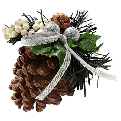Festive decorated pinecones in a black and silver theme Large pinecones decorated with berries, small cones, ribbon and festive tree tips Ideal for hanging in your tree or around your home Designed for WeRChristmas Set of five per pack