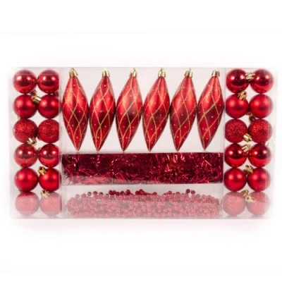 WeRChristmas Deluxe Variety Christmas Tree Baubles with Tinsel and Beads 32 Piece, Red